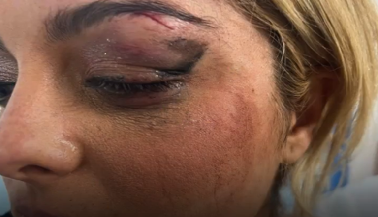 La mujer informó que tuvo que recibir tres puntos de sutura en la ceja por el golpe que recibió con el celular.