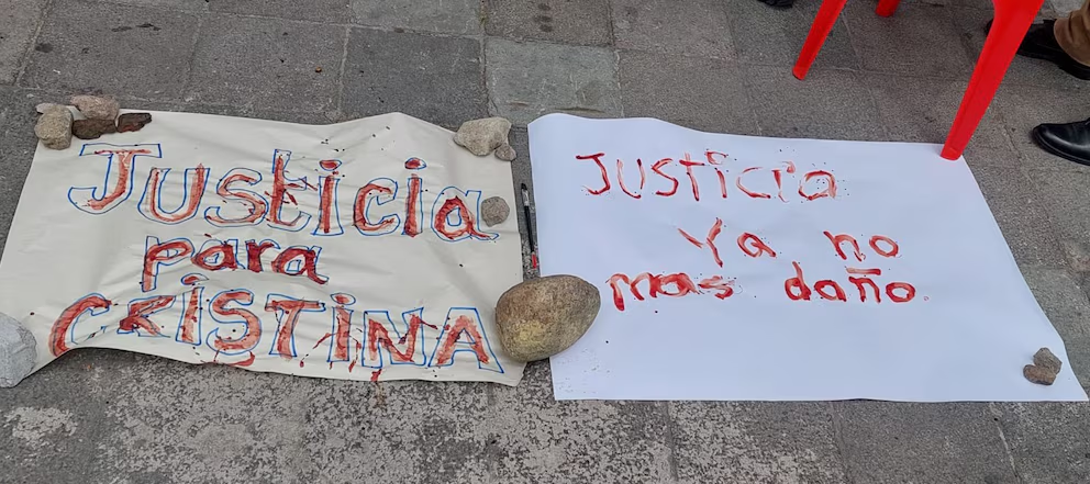 En noviembre de 2024, en un acto de desesperación, Cristina se extrajo sangre frente a la Fiscalía General del Estado en Quito para luego utilizarla como tinta para escribir una leyenda como una forma de exigir justicia.