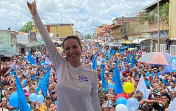 María Corina Machado lanzó un reto este jueves desde Tinaquillo, estado Cojedes: En el 2024, que dejen el miedo y que se midan con el pueblo de Venezuela porque vamos a ganar y vamos a cobrar.