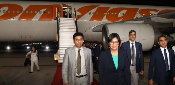 A su llegada a Nueva Delhi, la vicepresidenta y la delegación que la acompaña fueron recibidos por la embajadora de Venezuela en la India, Capaya Rodríguez, y representantes de este país asiático.