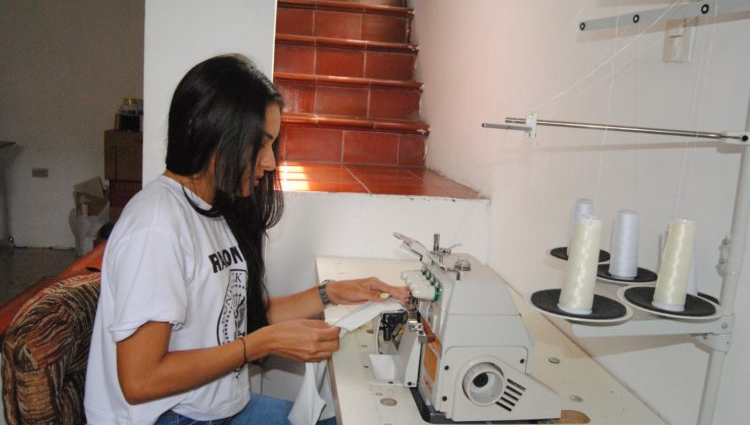 Ahora esta joven entra por una pequeña puerta que da paso al local donde tiene su taller de costura, ubicado en el sector San Luis. La constancia le ha permitido adquirir máquinas industriales que le hacen mucho más fácil el trabajo, y contar con un equipo de 5 empleados.
