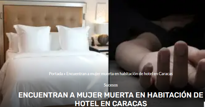 Encuentran a una mujer muerta en habitación de hotel de Caracas