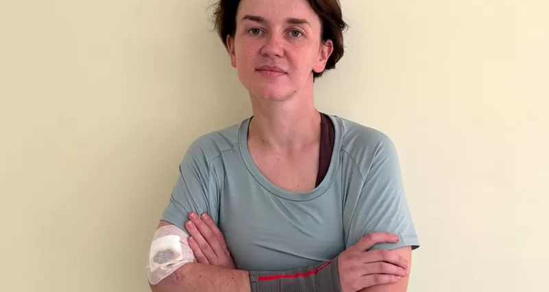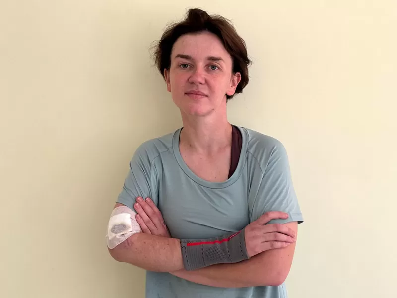 La BBC encontró a Andriana en un centro de rehabilitación en Ucrania, en un lugar que no podemos nombrar por su seguridad, después de que una mina terrestre la hiriera en la región de Kherson en diciembre.