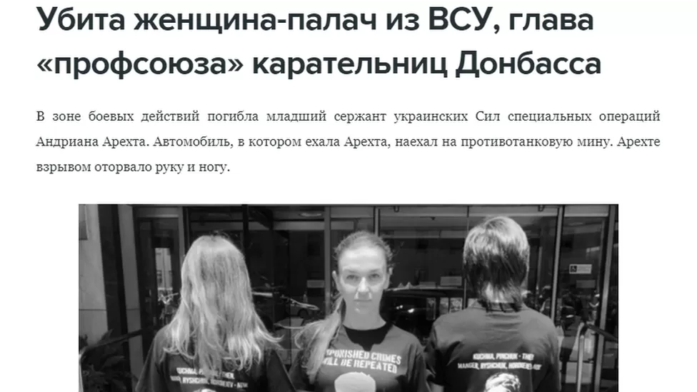 El batallón Aidar, donde estaba sirviendo Andriana, fue acusado por el Kremlin y Amnistía Internacional de violaciones de derechos humanos, pero el ejército ucraniano le dijo a la BBC que no se habían proporcionado pruebas sustanciales para respaldar tales afirmaciones.