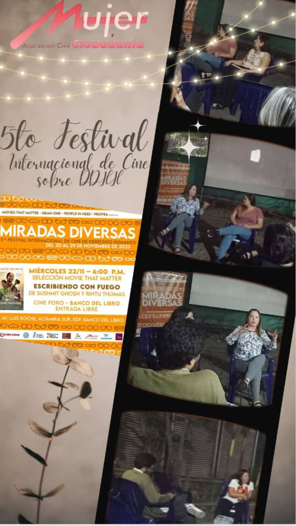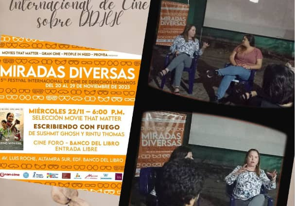La presentación de la película Escribiendo con fuego ( Writing with Fire), o jugando con fuego presentada este miércoles 22 de noviembre contó con la moderación de Mujer y Ciudadanía, Voces Vitales y la Red de Periodistas venezolanas, quienes al final de la proyección, hablaron de su enfoque  particular de la película.