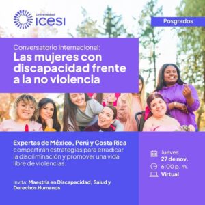 En el marco del día de la no violencia contra la mujer, la Maestría en Discapacidad, Salud y Derechos Humanos de la Universidad ICESI invita al conversatorio internacional: «Las mujeres con discapacidad frente a la no violencia».