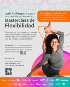 La experiencia y cercanía de @leidy.flex llega para rejuvenecerte y hacer mejor tu vida a través de la flexibilidad este domingo 24 de noviembre con la mejor MASTERCLASS de flexibilidad