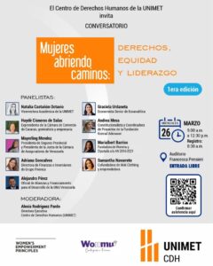 El Centro de Derechos Humanos de la UNIMET te invita al conversatorio “Mujeres abriendo caminos: Derechos, Equidad y Liderazgo” 💪✨