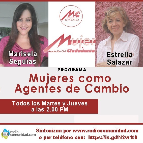 Este martes, 6 de Abril de 2021, no te puedes perder de 2pm a 3pm de la tarde MUJERES COMO AGENTES DE CAMBIO, el programa de la Asociación Civil Mujer y Ciudadanía, transmitido por www.radiocomunidad.com
