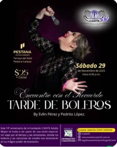 Info y venta aquí: https://eventosvipmch.com.ve/project/encuentro-con-el-recuerdo-tarde-de-boleros-cainte/