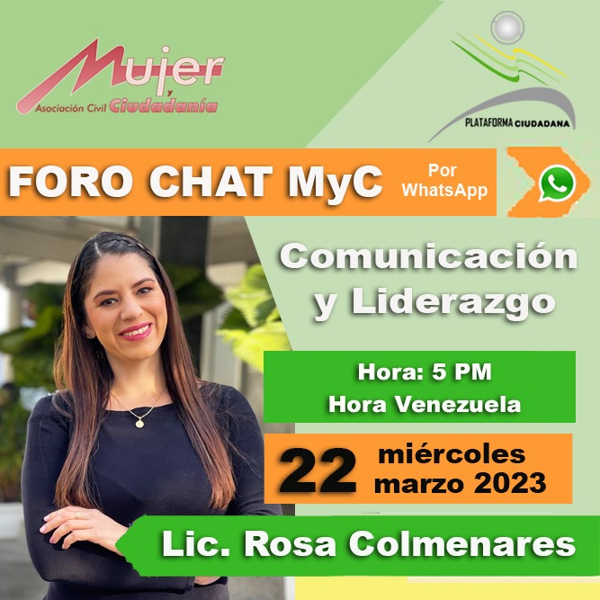Ingresa al grupo del Foro Chat de Mujer y Ciudadanía: https://chat.whatsapp.com/D2BLSD06MhN6n3vRVka1vz