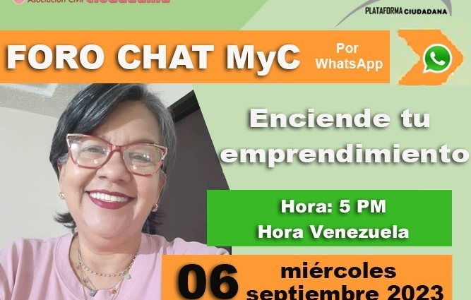 Mujer y Ciudadanía desarrollará el miércoles 6 de septiembre su acostumbrado foro chat por la aplicación whatsapp. En esta oportunidad nuestra invitada especial: Evelin Semprún disertará sobre tips para emprender con éxito, con el objetivo de brindar estrategias y recomendaciones para que le des vida a un emprendimiento organizado.