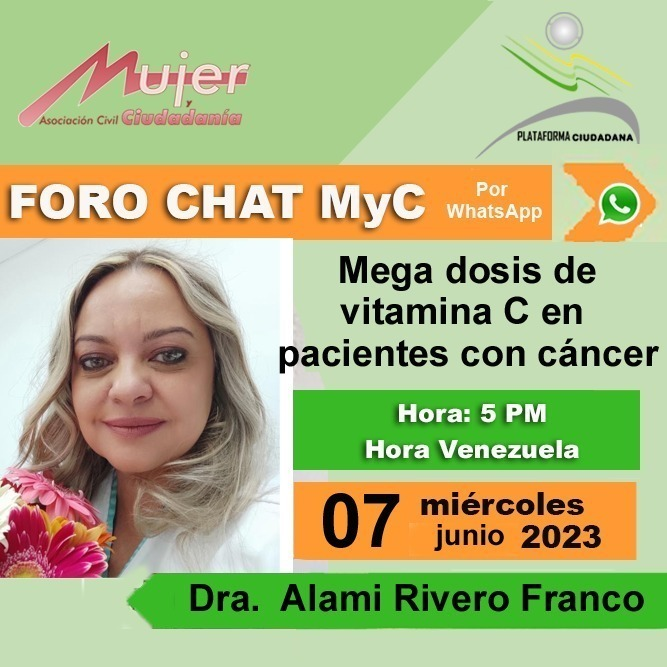 El miércoles 7 de junio, a las 5 de la tarde, la Dra. Alami Rivero Franco, se encargará de exponer sobre la conveniencia de aplicáción de dosis muy altas de vitamina C a pacientes con cáncer: ¿cuándo, cómo y por qué hacerlo?