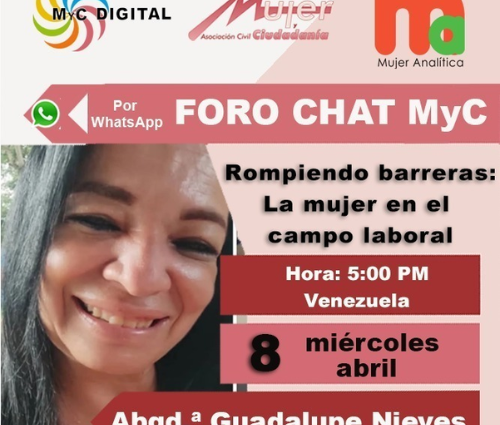 (7 marzo 2026) Con el objetivo de visibilizar los desafíos y promover estrategias para la inclusión femenina, se llevará a cabo el foro chat «Rompiendo Barreras: La Mujer en el Campo Laboral». El encuentro virtual contará con la diertación de la abogada Guadalupe Nieves, quien abordará la persistente brecha de género y las nuevas oportunidades en el entorno profesional actual.