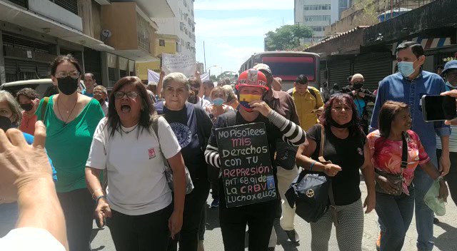 Trabajadores del sector público toman la Avenida Baralt mientras pronuncian consignas con las cuales exigen la restitución de sus derechos laborales.