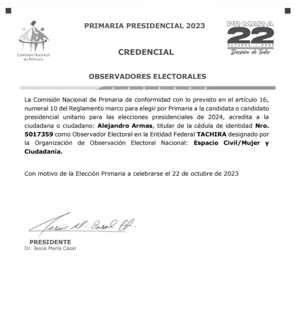 Desde la Comisión Nacional de primaria queremos reiterar que el proceso cuenta con OBSERVADORES ELECTORALES NACIONALES acreditados en todo el país, y exhortamos a que se divulgue la estructura de juntas regionales, partidos, miembros de mesa y coordinadores de centro, a fin que se atienda a todos los ciudadanos acreditados a tal fin, con toda transparencia.