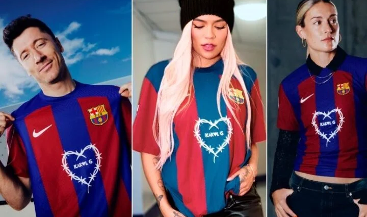 “Esta vez la artista escogida ha sido la colombiana KAROL G, la cantante latina con más reproducciones durante los últimos cuatro años en Spotify a nivel global”, anunció el club catalán en un comunicado, donde posteriormente comparte un audiovisual en el que varias figuras del club presentan la camiseta que será estrenada el próximo domingo 21 de abril.