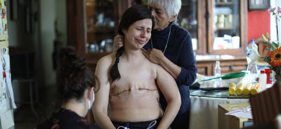 Sandra Monroy abrió las puertas de su casa a la fotógrafa Sáshenka Gutiérrez (Ciudad de México, 41 años) tras haberse sometido a una mastectomía doble. Había quedado con ella para que inmortalizara varios momentos de su día a día tras la operación en la que le extirparon los dos pechos. En el instante de la captura de la imagen, a Sandra la acompañaban su madre y una de sus mejores amigas; Gutiérrez se quedó en un segundo plano: “Quise ser muy cuidadosa con los disparos de mi cámara, no quería que el obturador rompiera el momento, tengo unas tres fotos del instante”, cuenta por teléfono desde México.