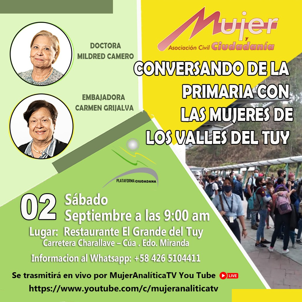 La organización Mujer y Ciudadanía invita al evento Conversando sobre la primaria con las mujeres de los Valles del Tuy