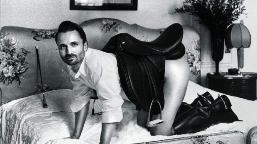 Las imágenes, es decir, la mirada, que recogen las redes y sitios de todo el mundo por estos días generan extrañeza: aquellas supermodelos desnudas (cuerpos hegemónicos femeninos desnudos) ensilladas como potros o encadenadas por el cuello como perros en adiestramiento, las piernas abiertas debajo de un amo que en el contacto visual y la tensión de la correa demanda sumisión, son suplantadas por Hape, la mayor parte de las veces producto de montajes, con cuerpos de modelos queers y masculinos.