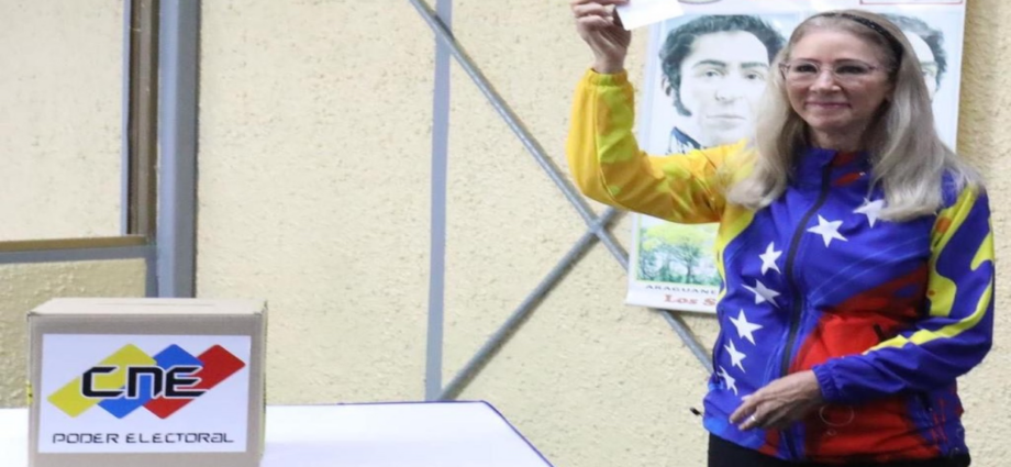 Tras acompañar al candidato presidencial, Nicolás Maduro, la primera dama de la República, Cilia Flores ejerció su derecho al voto este domingo 28 de julio.