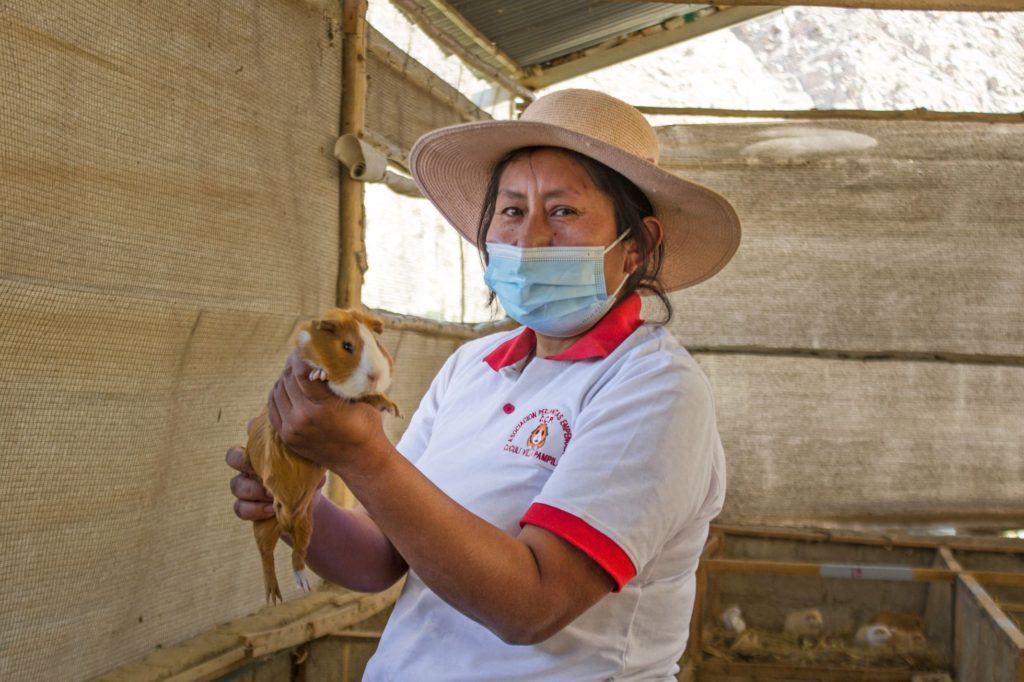 Con el proyecto, mejoraron la infraestructura, aprendieron nuevas técnicas para cuidar y sacrificar a sus cuyes, y llegaron a mercados más exigentes en Lima. En eso estaban hasta que Perú decretó una estricta cuarentena para contener la pandemia. “La comunidad se cerró, nadie podía entrar ni salir a comprar todos los alimentos de los animales. Solo pasaba un camión cada 15 días con nuestros encargos”, recuerda la presidenta.