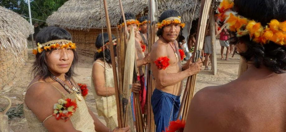 Hombres y mujeres awa se preparan para salir de caza. Entre los awa, que habitan una porción de la selva brasileña del estado de Maranhão, hay comunidades que aún no han tenido contacto con los blancos..SCOTT WALLACE (GETTY IMAGES)