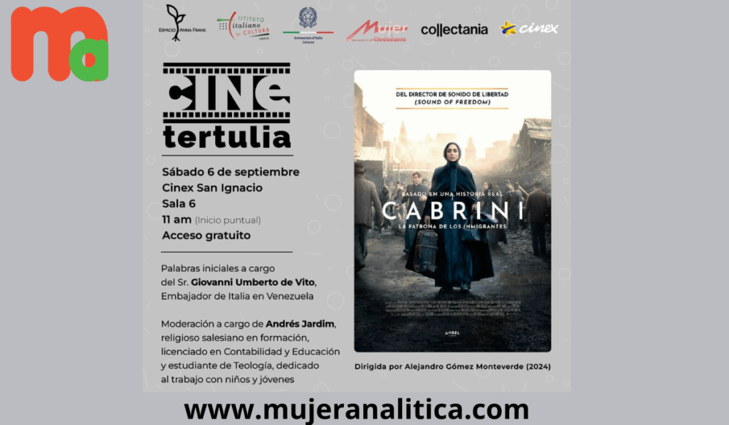 (28 de agosto 2025) La presidenta de la asociación civil Mujer y Ciudadanía, arquitecta Aixa Armas, informó a la Revista Mujer Analítica, que esta organización estará acompañando a Espacio Anna Frank en su programa Cine Tertulia, en la proyección de la película «Cabrini«, un drama biográfico que relata la vida de Santa Francisca Javiera Cabrini, la primera santa estadounidense.