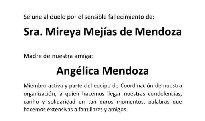 Mujer y Ciudadanía lamenta fallecimiento de la Sra. Mireya Mejías de Mendoza