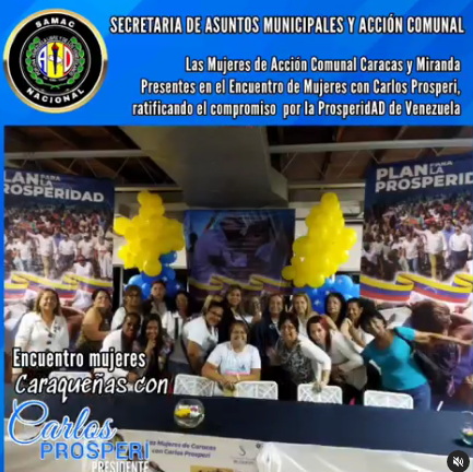 Las Mujeres de Acción Comunal Caracas, Miranda y demás compañeros, presentes en el «Encuentro de Mujeres con Carlos Prosperi» ratificando el compromiso por la ProsperidAD de Venezuela. ¡ADelante!