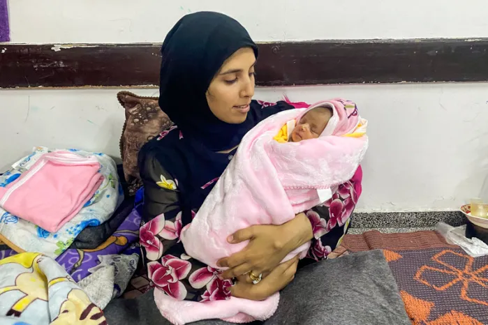 En labor de parto en medio de bombardeos en Gaza