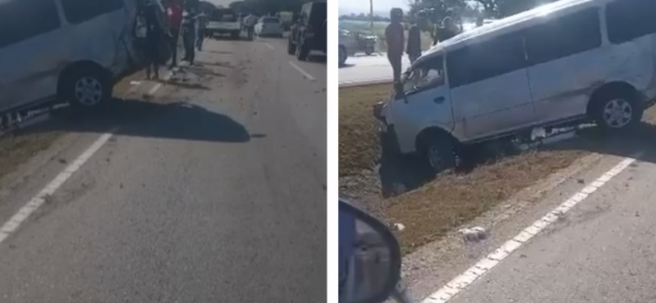 “Veníamos de una presentación en Río Chico cuando, por delante, una camioneta Van y un Spark se colearon, lo que hizo que la camioneta comenzara a dar vueltas. Esta colisionó con nuestra camioneta, pero afortunadamente no sufrimos ningún daño, solo hubo daños materiales. Estábamos con la cantante Cristina Maica, la cantante Victoria Ramos, los músicos y yo, pero todos estamos bien”, comentó Jesús Cuevas, uno de los acompañantes.