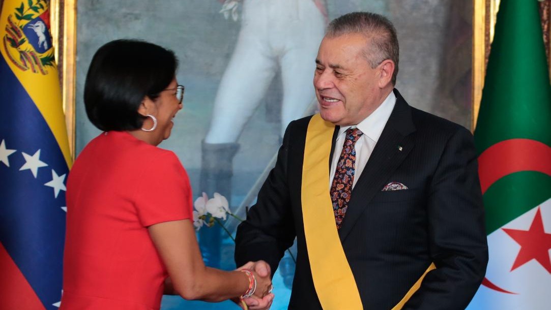 Este miércoles, la vicepresidenta Ejecutiva de la República, Delcy Rodríguez, encabezó un acto protocolar para despedir al embajador de Argelia en Venezuela.