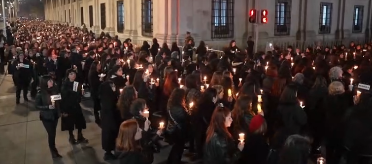 Vestidas de negro, con velas encendidas, y un cartel que decía «Nunca más» se concentraron este domingo frente al Palacio de la Moneda, la sede presidencial chilena para conmemorar el cincuenta aniversario del Golpe de Estado del general Augusto Pinochet.